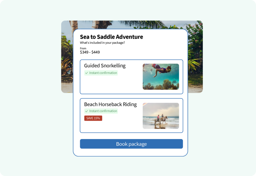 • Packages make it easy to build and sell curated experiences, giving your customers more value while booking.